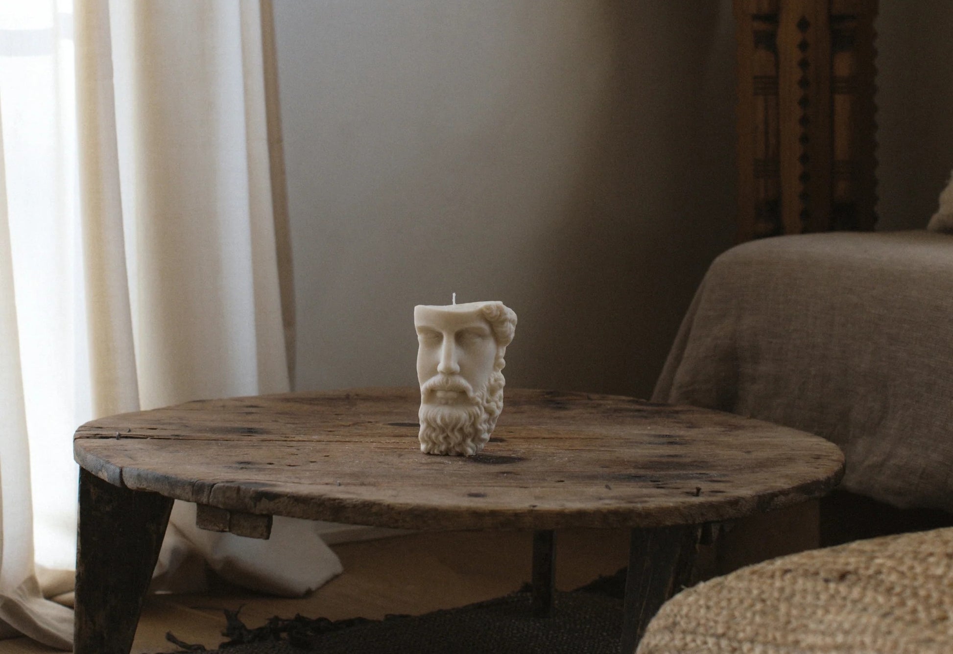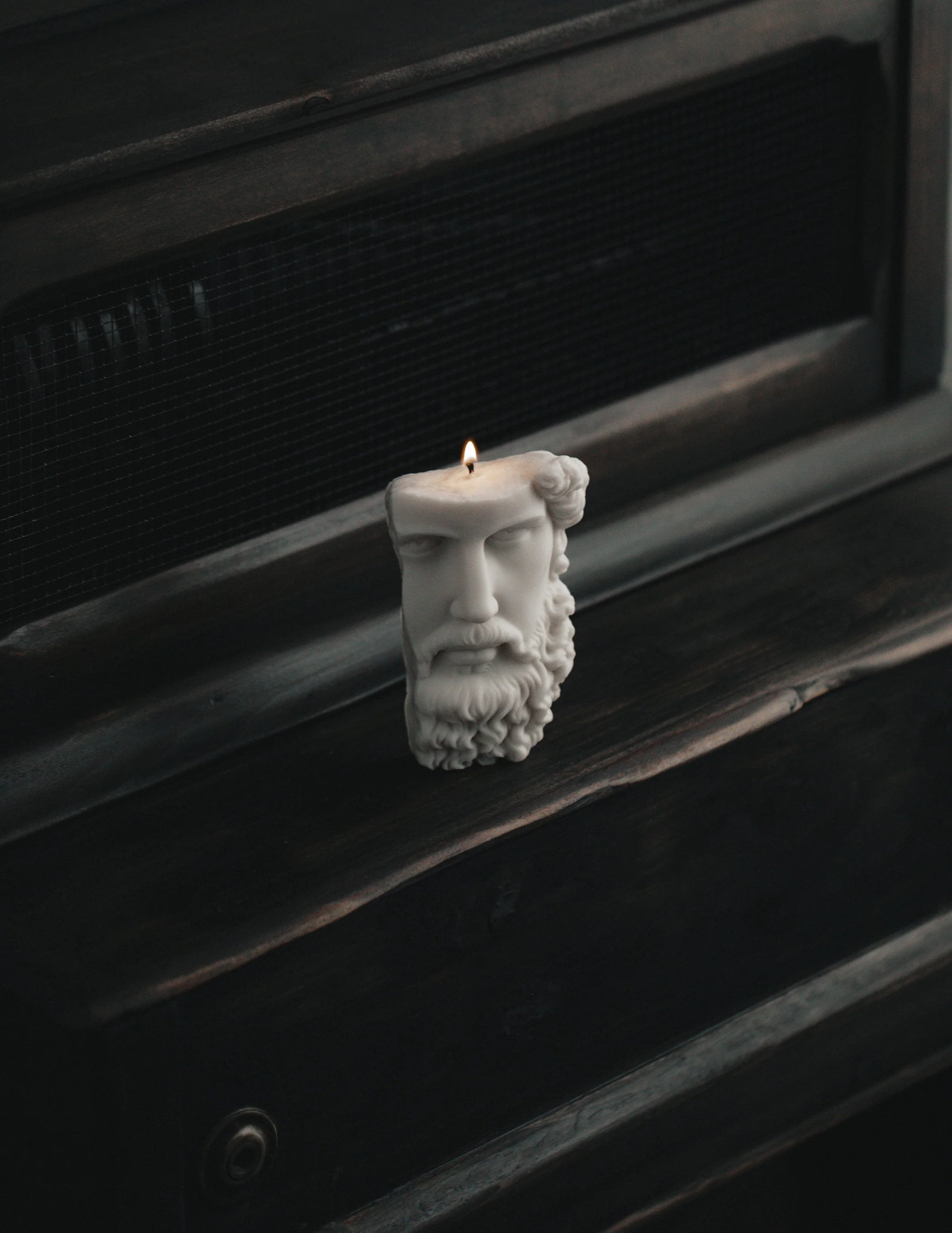 Diese Kerze trägt das Antlitz eines alten Gottes –